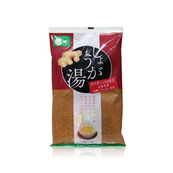 高知県産のしょうがを丸ごと生のまますりおろし北海道産の甜菜(ビート)を使用したビートグラニュー糖とばれいしょでんぷん(北海道産馬鈴薯)を加え風味豊かな美味しいしょうが湯に仕上げました。