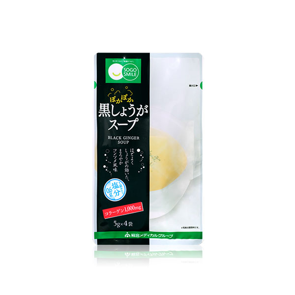 伝統素材の黒しょうがを、コンソメ風味のスープにしました。