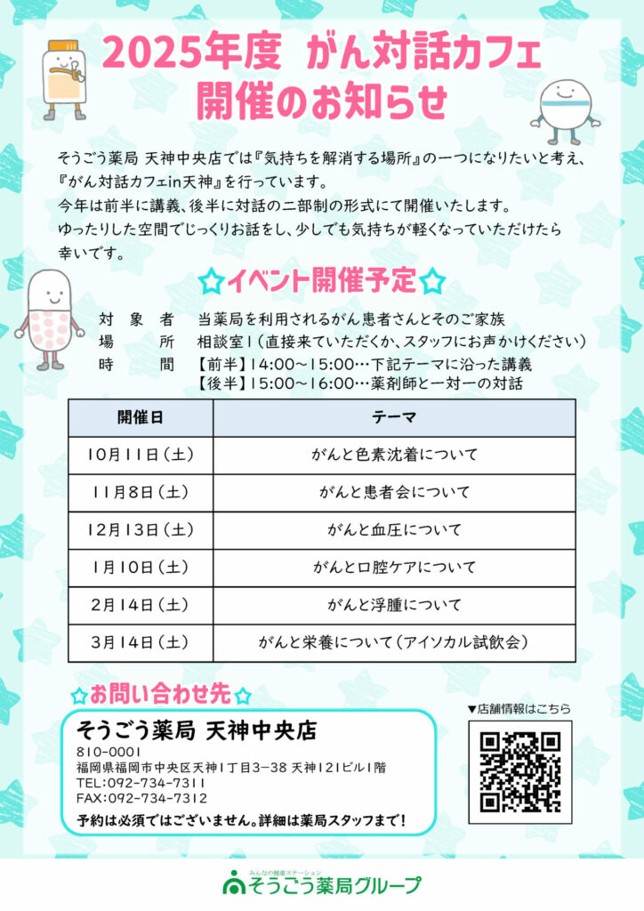 そうごう薬局 天神中央店主催「がん対話カフェ」のお知らせ(10月~3月)